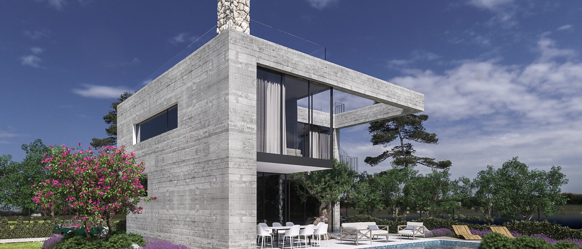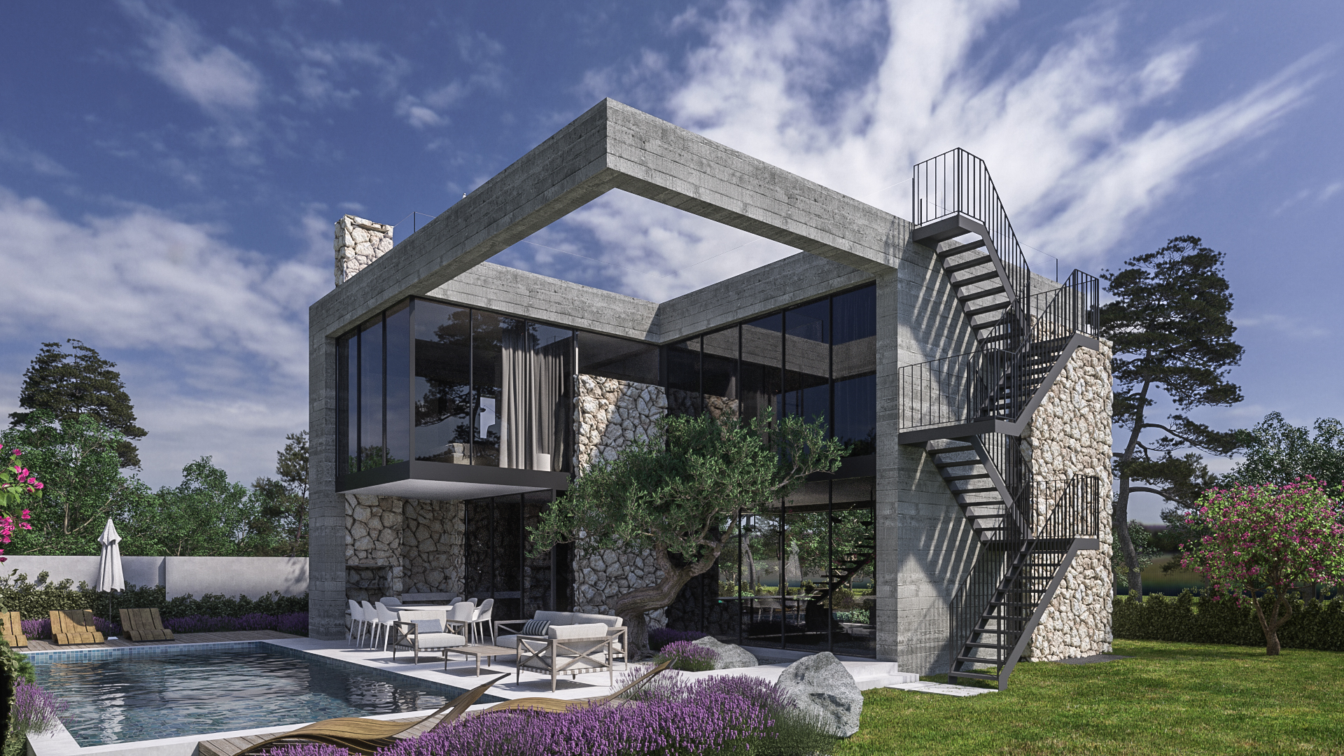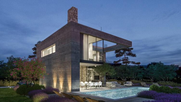 Projekt se odnosi na modernu luksuznu vilu na otoku Braču. Vila je dizajnirana tako da se skladno uklopi u okolni krajolik, istovremeno maksimizirajući privatnost i panoramske poglede. Arhitektonski koncept kombinira suvremeni dizajn s diskretnim tradicionalnim elementima, stvarajući harmoničnu rezidenciju s vanjskim prostorima optimiziranim za odmor i rekreaciju.