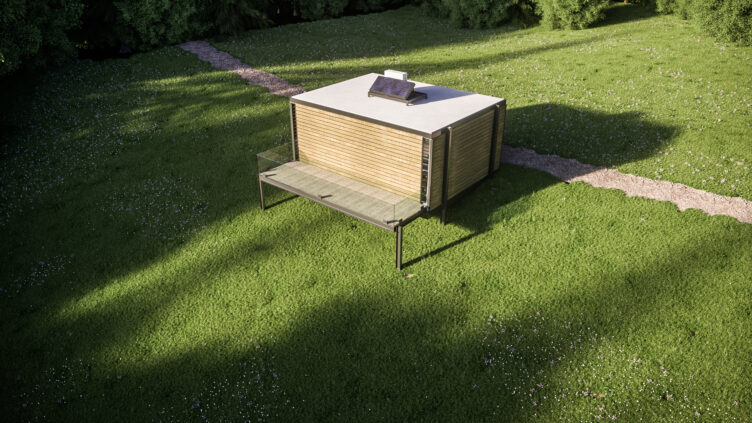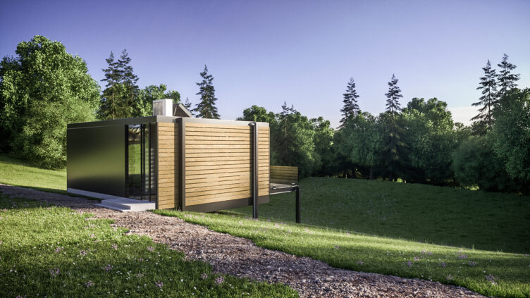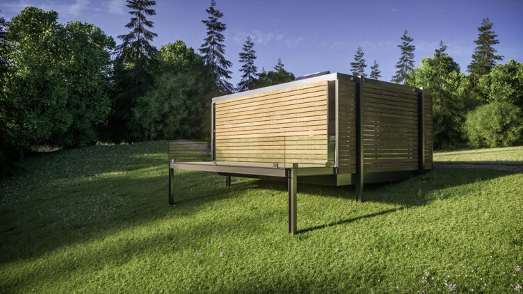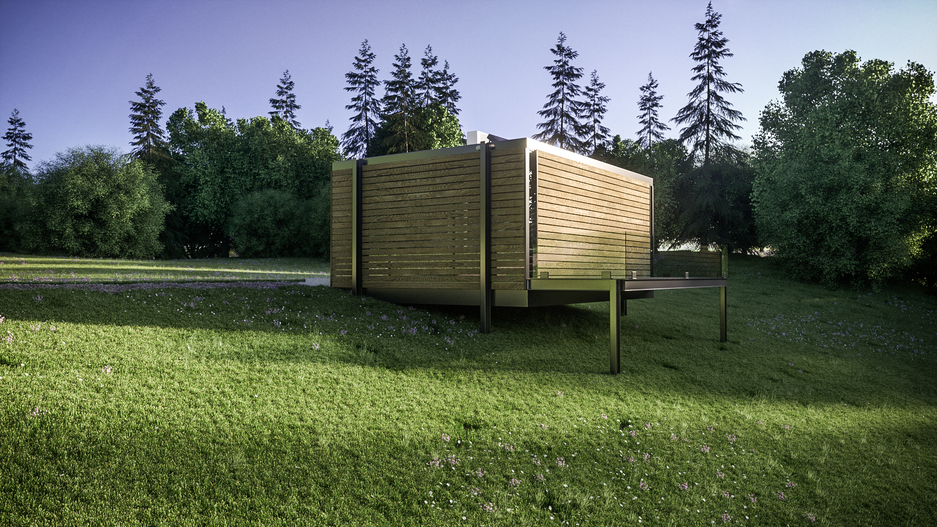 Ovaj koncept predstavlja višenamjensku modularnu jedinicu koja može služiti kao vikendica, studio, ured ili dugoročno prebivalište, s minimalističkim arhitektonskim pristupom, panoramskim pogledima i interijerom prilagođenim svakodnevnim potrebama.