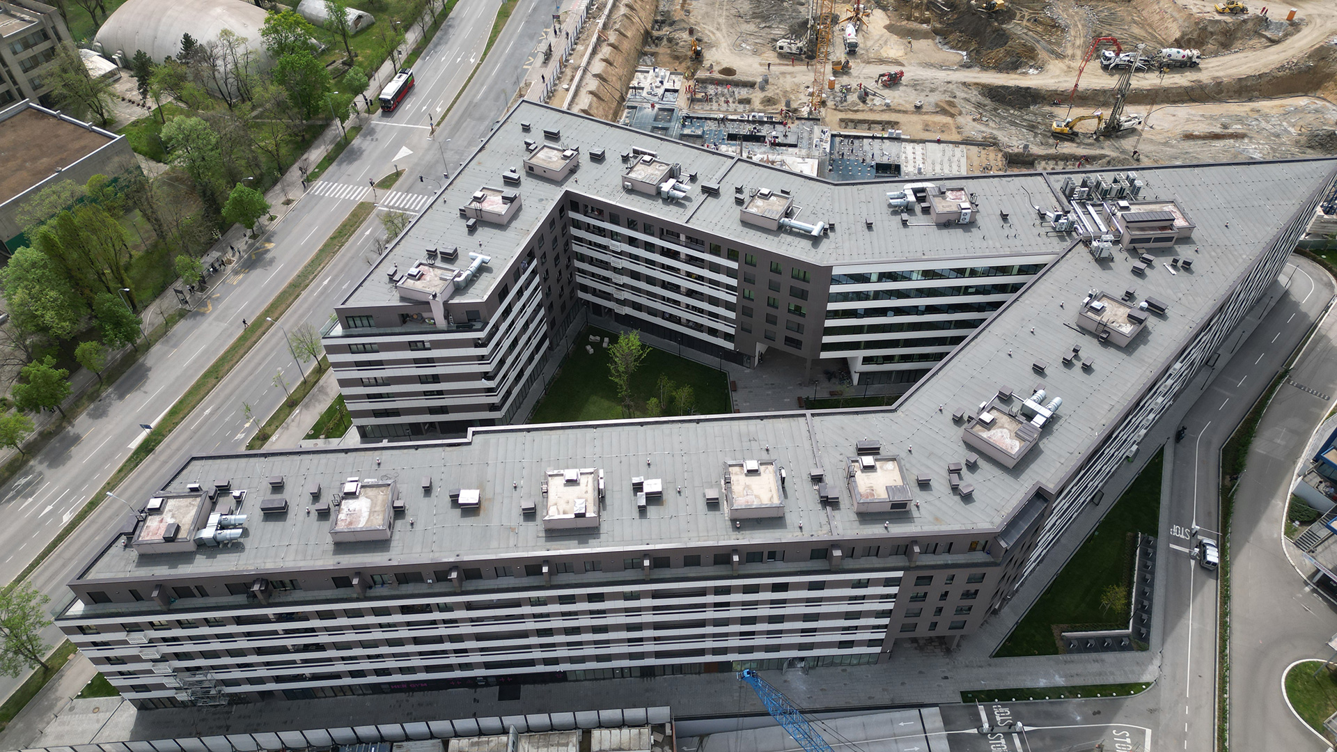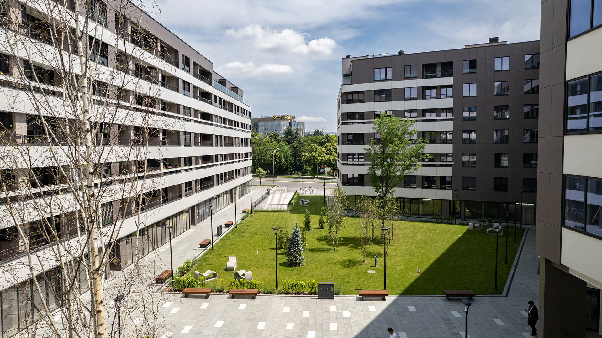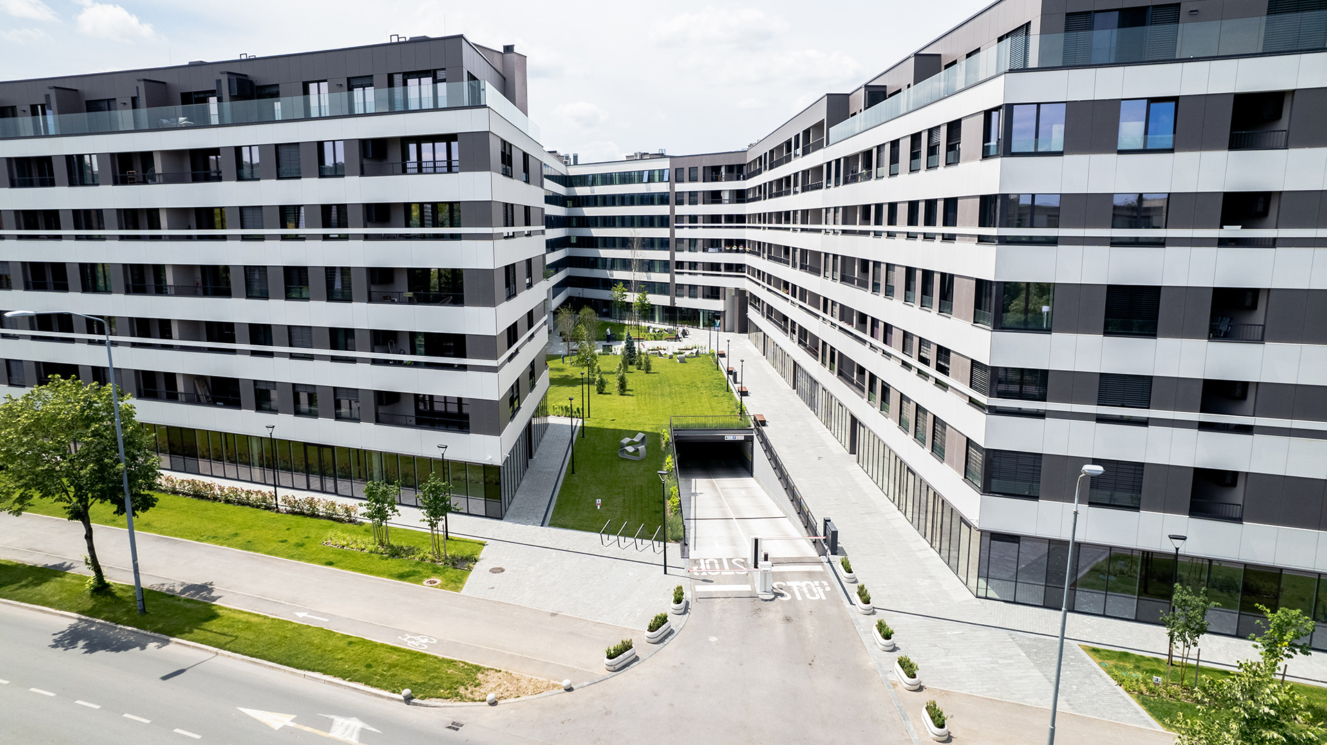 Posebna pažnja posvećena je organizaciji vanjskih prostora, pješačkih komunikacija i javnih ploha, s ciljem stvaranja kvalitetnog ambijenta za svakodnevno korištenje, socijalnu interakciju i boravak u prostoru. Parter je aktiviran poslovnim sadržajima čime se ostvaruje jasna veza kompleksa s urbanim tkivom.