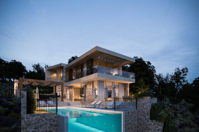 Vila Fosca u Pinezićima na otoku Krku suvremena je luksuzna rezidencija pažljivo uklopljena u mediteranski padinski krajolik. Projekt istražuje ravnotežu između tradicionalnih materijala i suvremenog arhitektonskog izraza, stvarajući sofisticiran i topao ambijent s naglašenom vezom prema moru i prirodi.