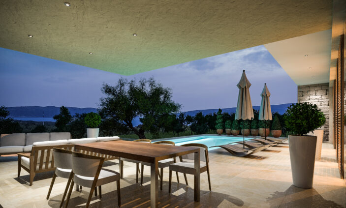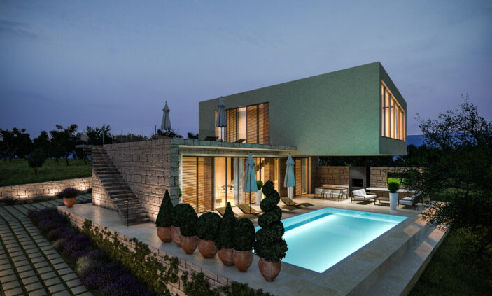 • Upotreba kvalitetnih, trajnih materijala – beton, drvo i kamen u skladnom spoju s mediteranskim okruženjem