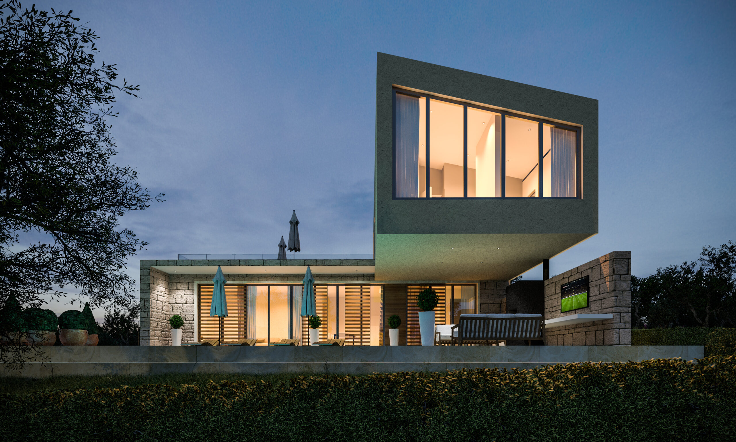 • Funkcionalna organizacija prostora s prizemljem, katom i galerijom, uz panoramske terase i krovnu terasu