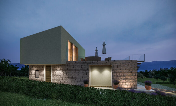 Na prelijepom otoku Krku, u naselju Linardići, projektirana je moderna stambena vila koja spaja suvremeni arhitektonski izraz s tradicijom otočkog graditeljstva. Zgrada je osmišljena tako da harmonizira s okolišem, poštuje mediteranski karakter mjesta i istovremeno nudi funkcionalan, luksuzan i udoban životni prostor.