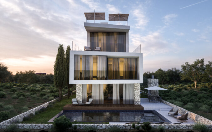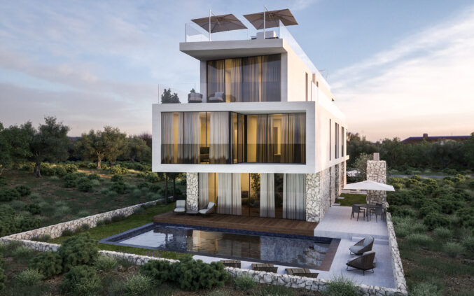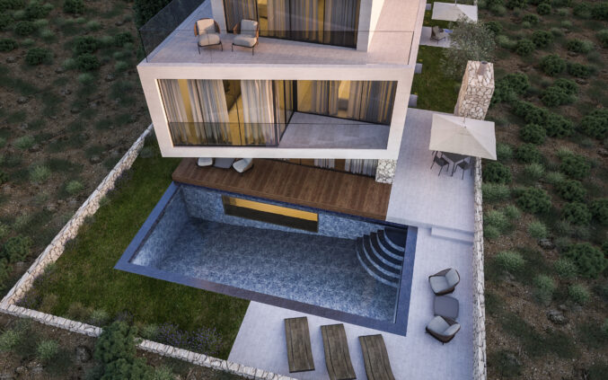 Although detailed material specifications are not listed, the visual identity of the project suggests the use of high-quality finishes adapted to the Dalmatian Mediterranean context – combining natural textures, elegant facade solutions, and large glazing to bring in light and connect the interior with the environment.