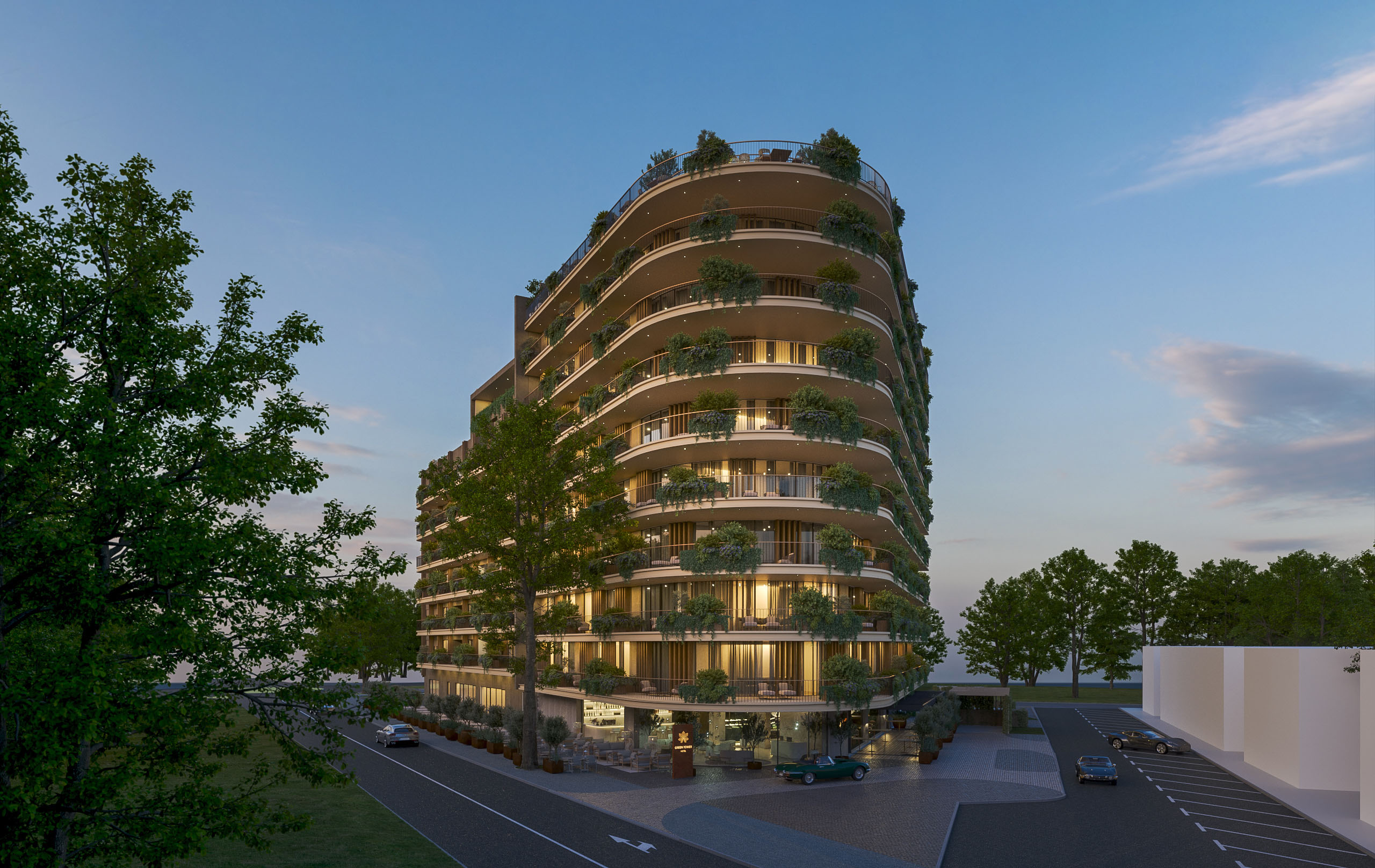 Green Tower is a contemporary hotel and residential complex located in the very center of Umag, conceived as a new urban anchor that integrates hotel and residential functions into a coherent architectural whole.