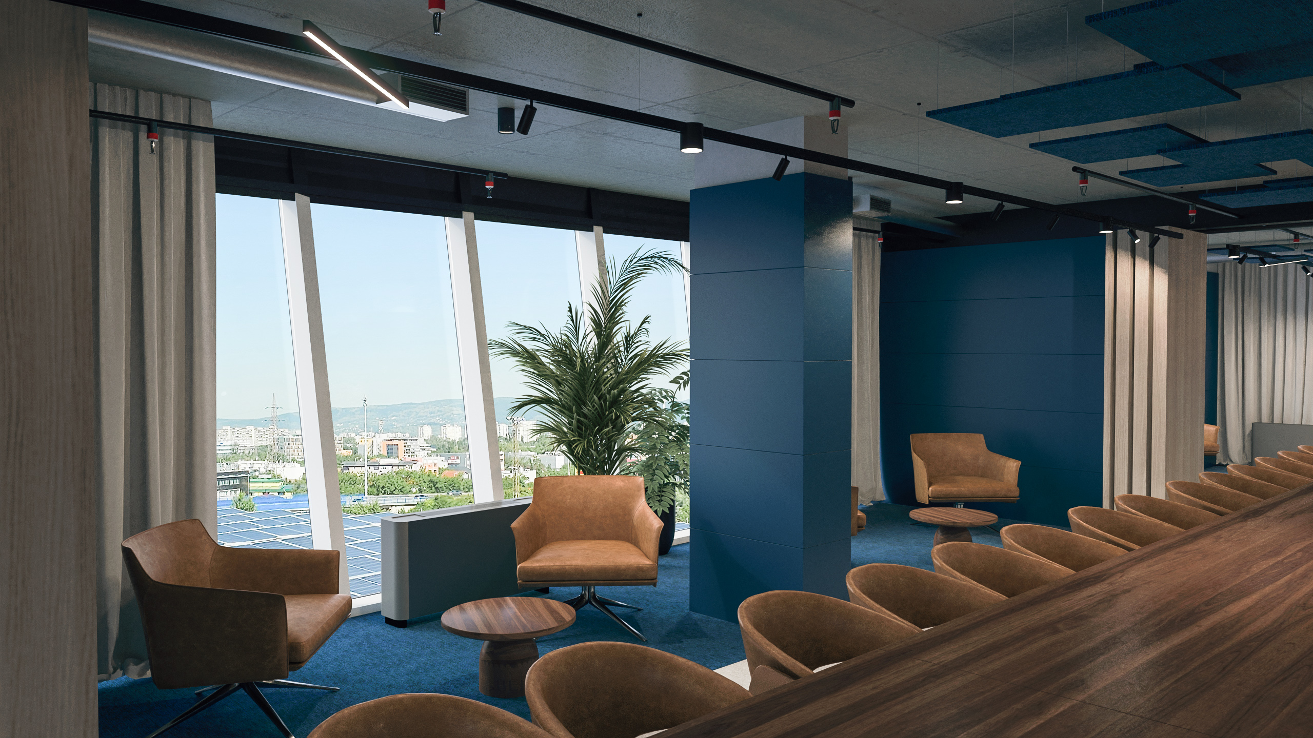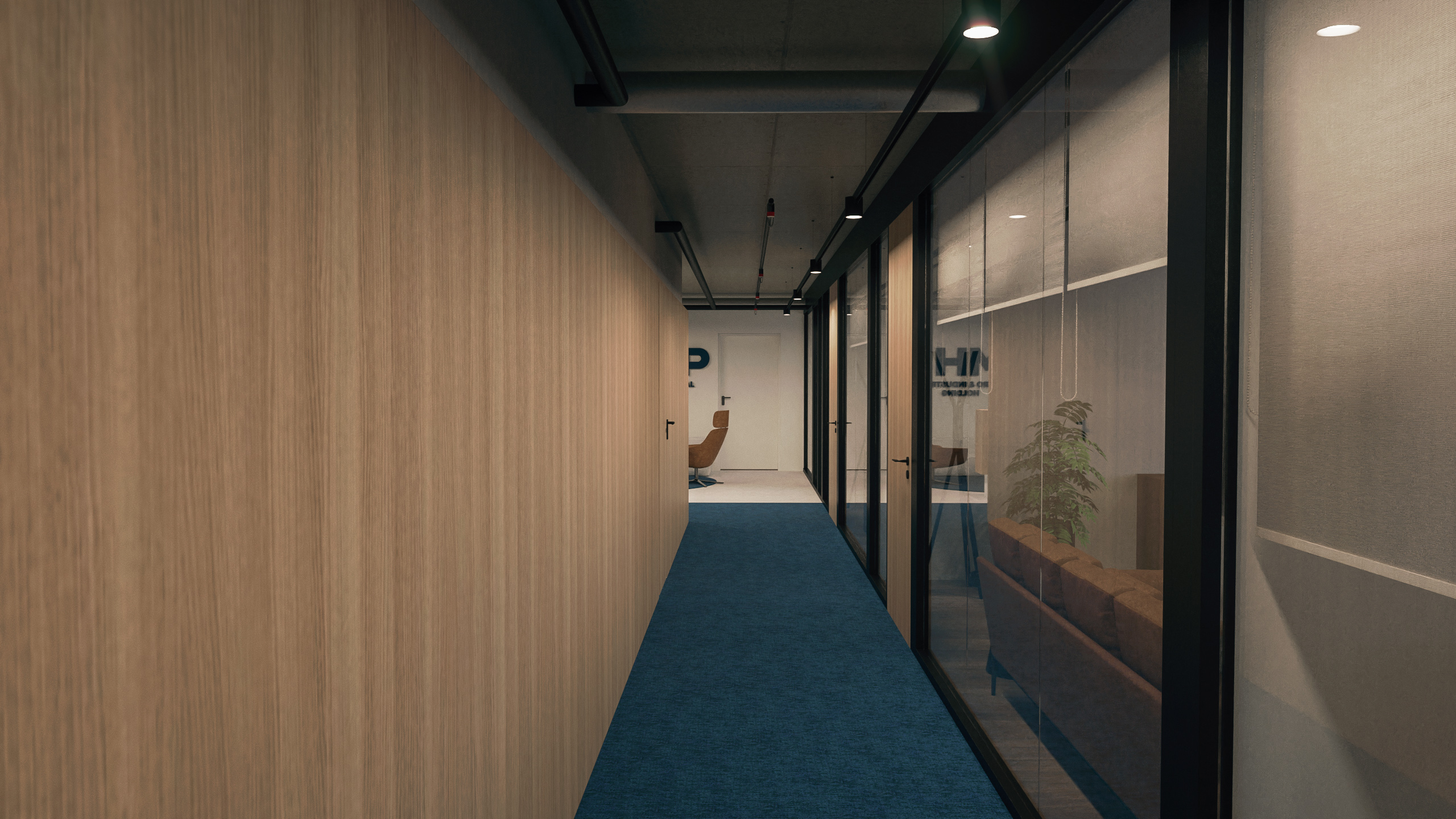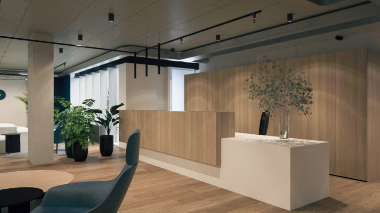 In addition to developing the design concept, the team managed contract negotiations, prepared tender documentation, supervised construction works, and coordinated all project participants. This integrated approach ensured quality control, adherence to deadlines, and budget management throughout all phases of realization. The result is a high-quality corporate interior that provides optimal working conditions, flexibility for future needs, and strong representative value — culminating in a smooth and successfully organized move-in of users into the new office space.