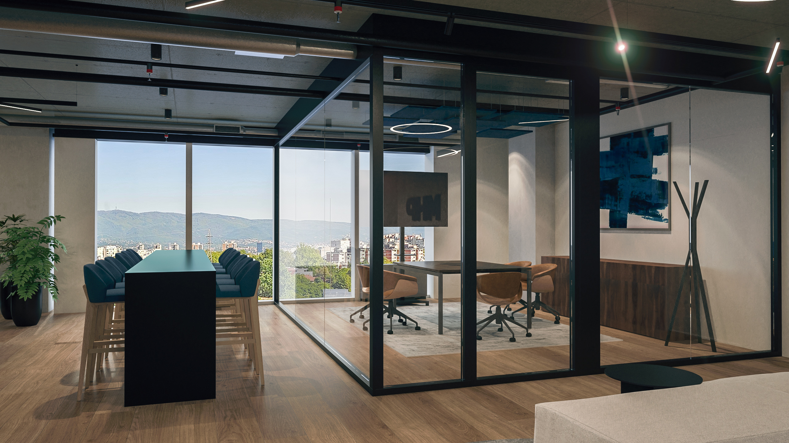 The interior design project for the MHP Group office in Zagreb, located within the City Island Buzin business complex, encompassed the complete design of a 1.800 m² office space. The objective was to create a contemporary, functional, and representative working environment that reflects the company’s international presence and professional standards.