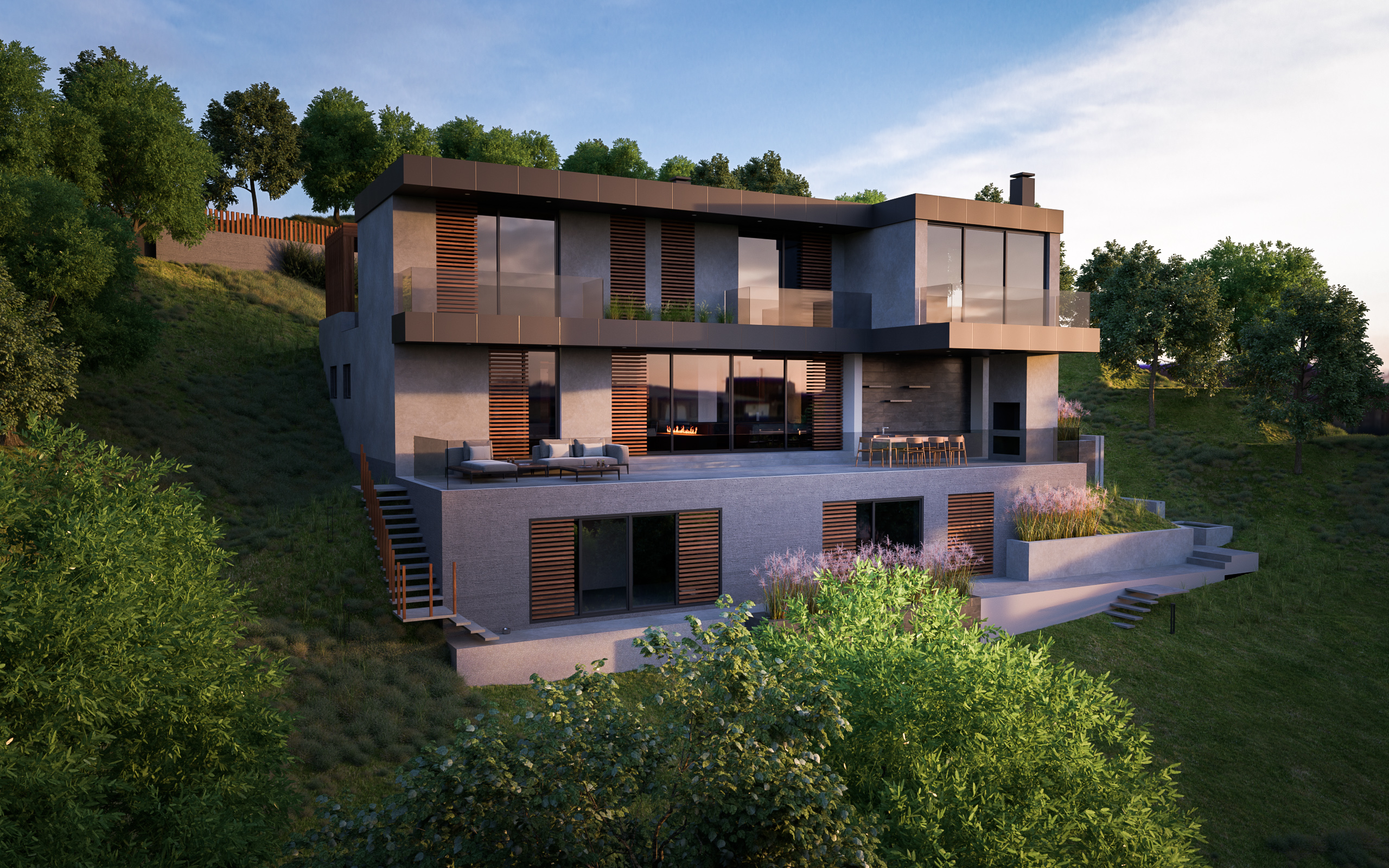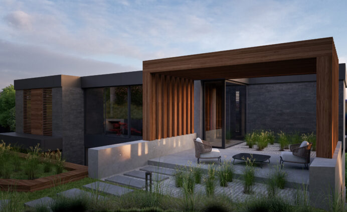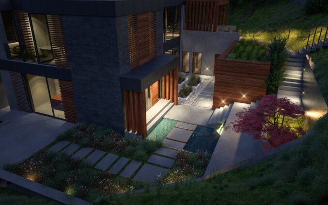 The architectural vision for Nature centers on a refined contemporary language defined through balanced volumes, clean lines, and a composition that dialogues with light, shadow, and surrounding greenery. The design emphasizes openness and transparency while preserving privacy, creating a residence that is both elegant and grounded in its environment.