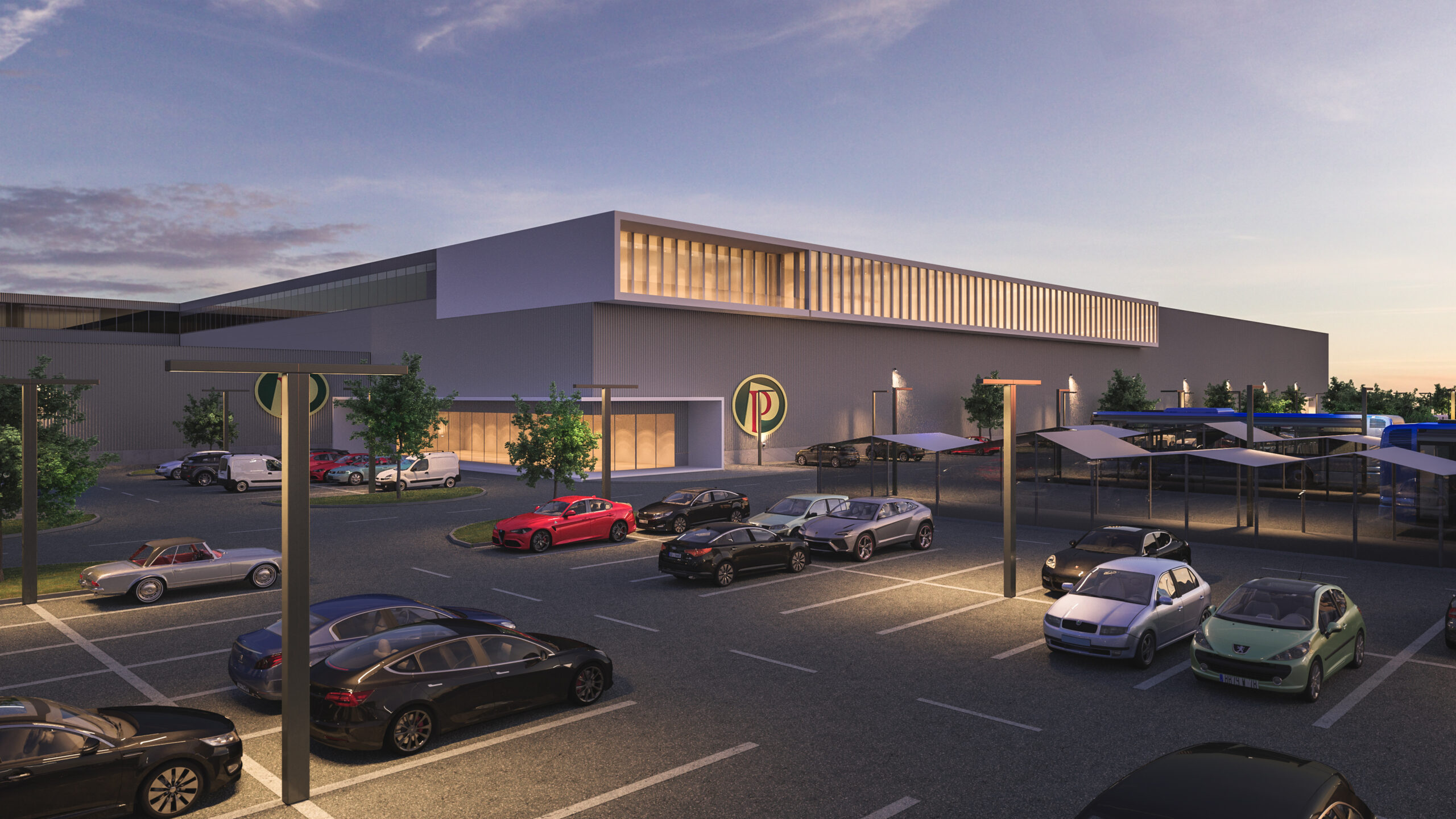 The volumes are designed as rational, easily legible entities with a pronounced industrial character. Facades are clad in modern industrial materials in neutral colors, giving the building a professional and serious identity in line with the reputation of an international manufacturer. The brand’s visual identity is discreetly integrated into the architecture, clearly emphasizing the facility’s corporate character and affiliation.