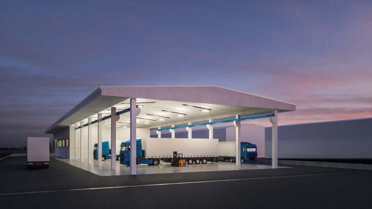 Design and architectural development of a 1,200 m² warehouse hall, tailored to contemporary logistics requirements.