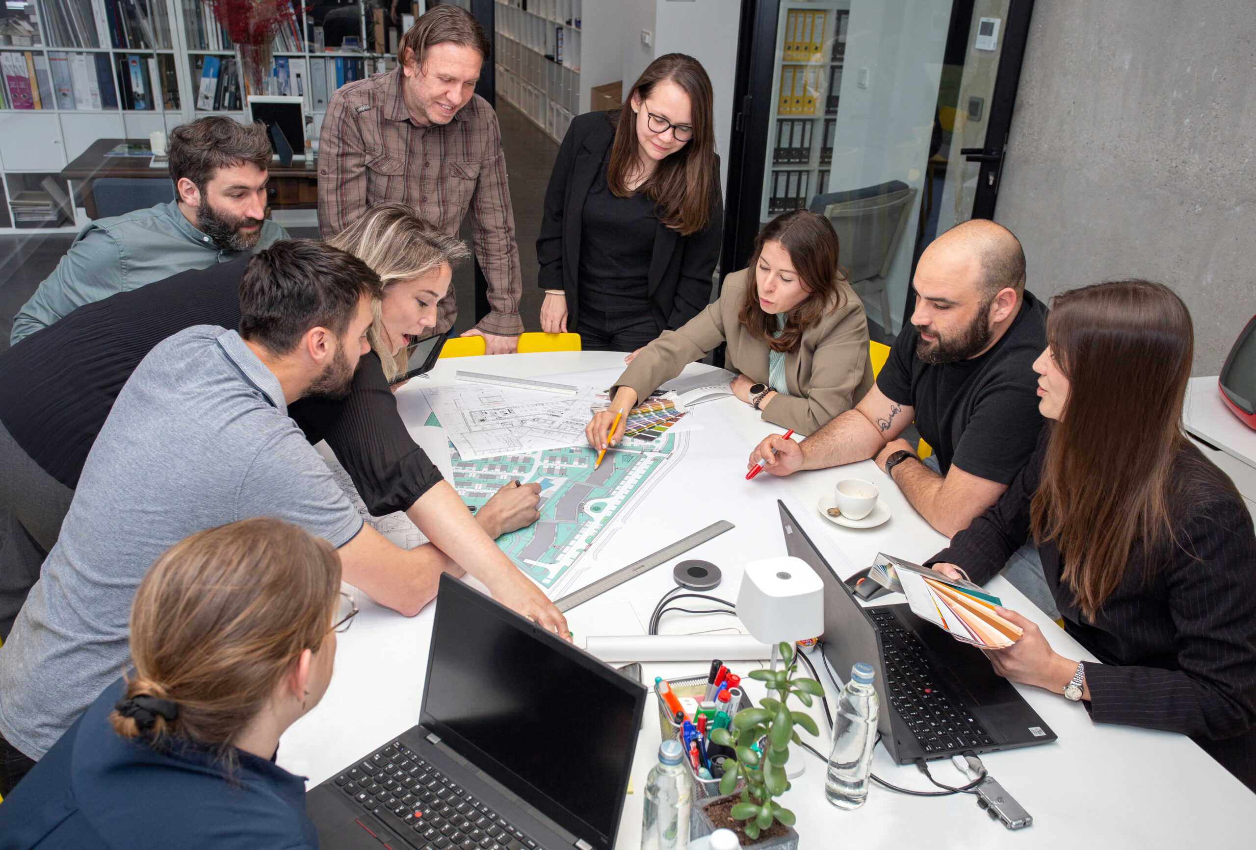 We bring together around 30 professionals of diverse backgrounds: architects, structural engineers, technicians, designers, and specialists for various phases of the design process. We differ in experience, personalities, and approaches, but we are united by the same energy – the desire to make every project better, more thoughtful, and of higher quality than the previous one.